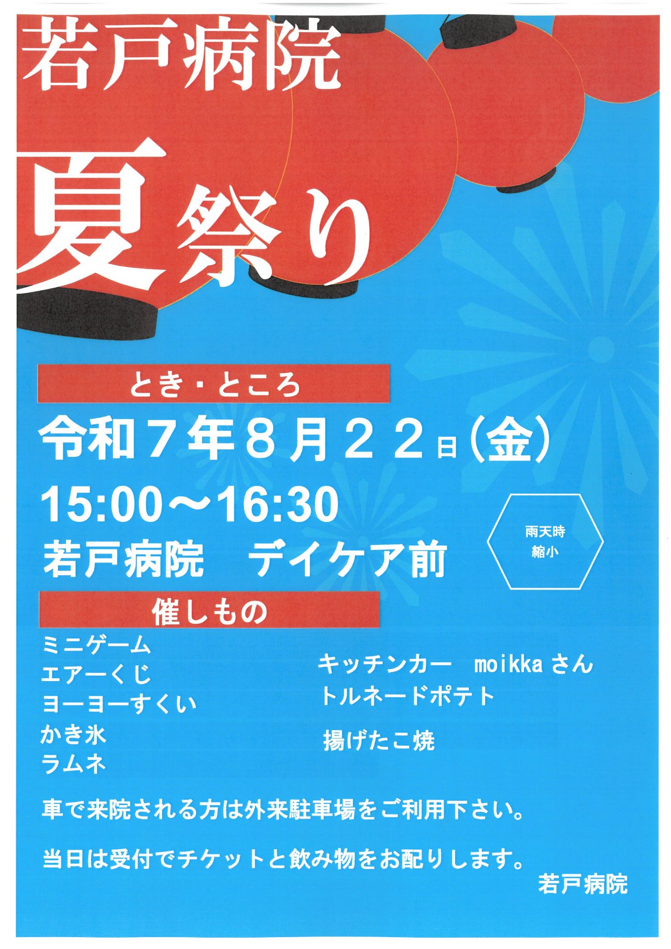 8/22 若戸病院 夏祭り 開催のお知らせ