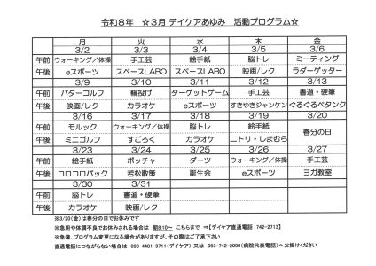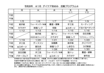 来月のプログラム